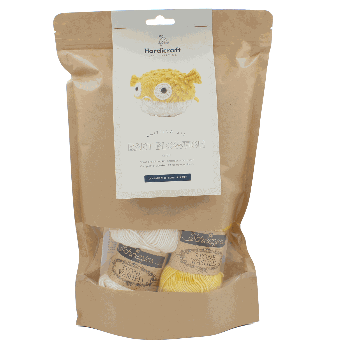 Este kit contiene un patrón, hilo mezclado de calidad y todos los suministros necesarios para trabajar (excepto agujas de tejer). Bart tiene aproximadamente 17 cm de diámetro y está hecho con agujas de tejer de 2,5 mm.